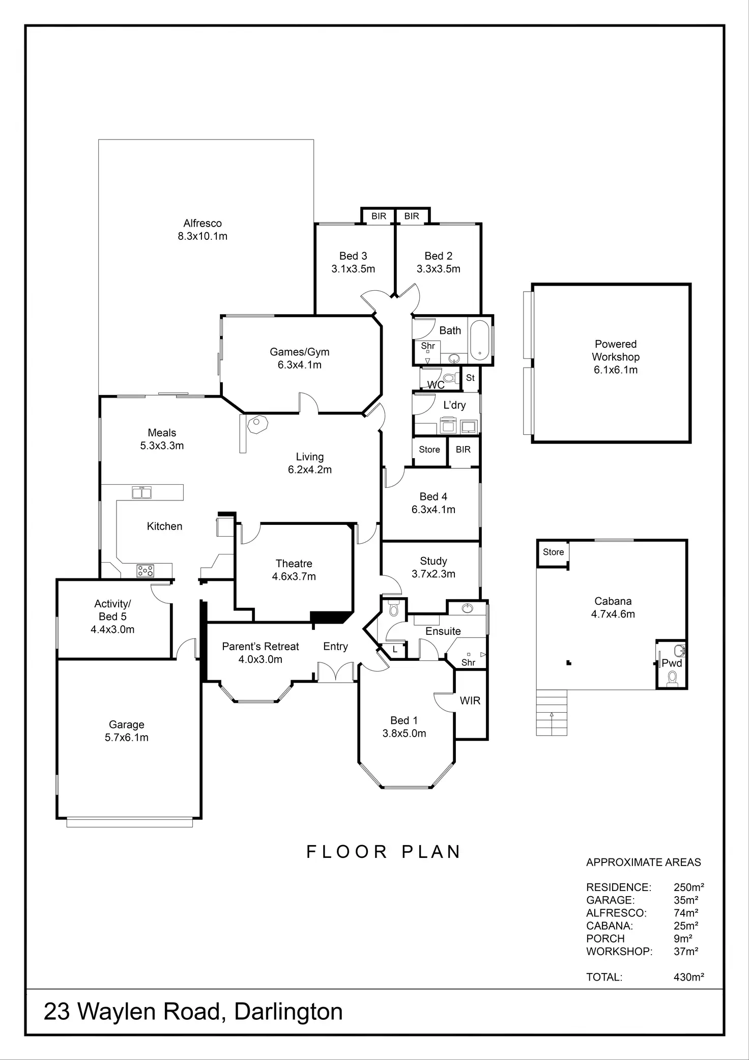 • Fully enclosable, elevated poolside cabana with powder room and storage cupboard, currently used a games room, and perfect for a studio, gym, or teenagers' retreat