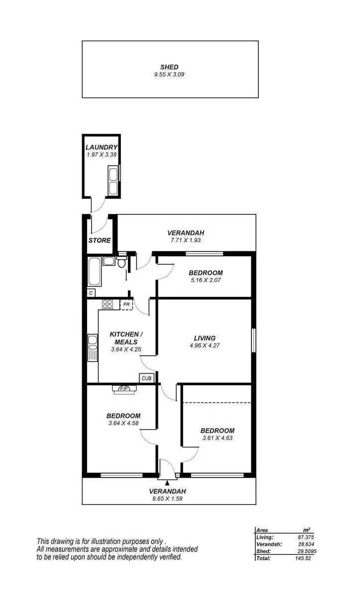 3 Bed • 1 Bath • 2 Car