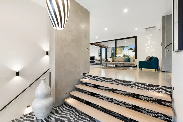 A mosaic tiled entrance that introduces a large home office with towering high ceilings and glass doors sets the tone for the sophisticated sense of style that resides inside, and once you fix your gaze on the enormous open-plan living zone that comfortably accommodates two sun-kissed living areas, chic dining area and first-class marble kitchen with Butler's pantry, the incredible proportions associated with this peerless sanctuary begin to materialise.
