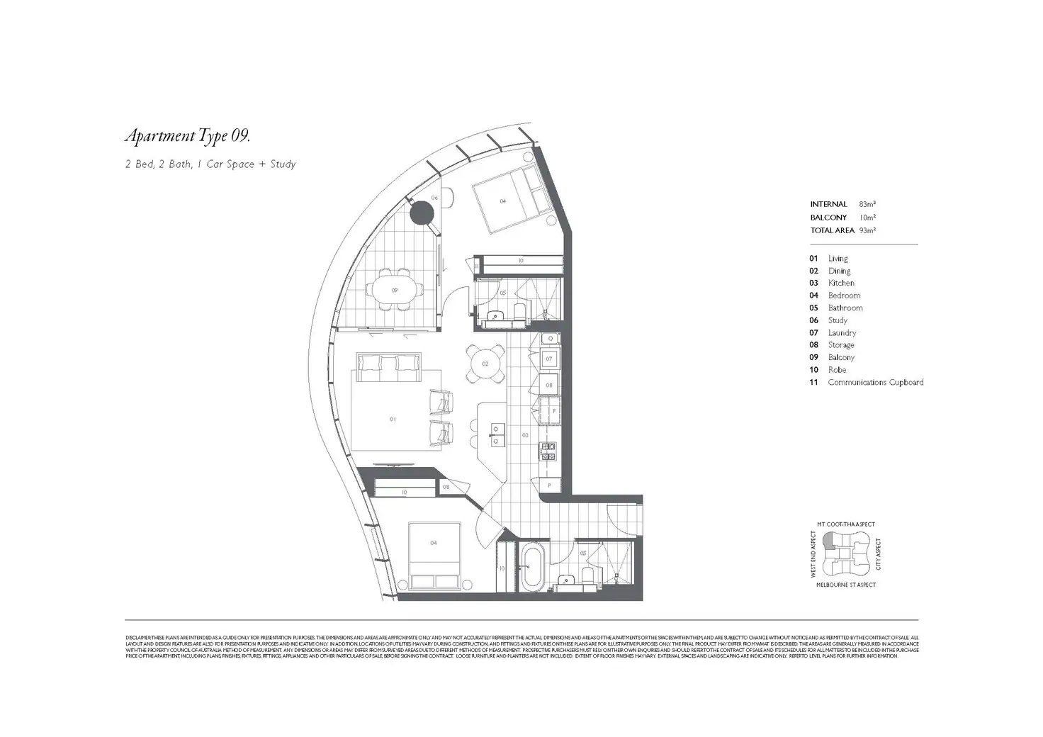 2 Bedroom, 2 Bathroom, 1 Car Space - City Facing.