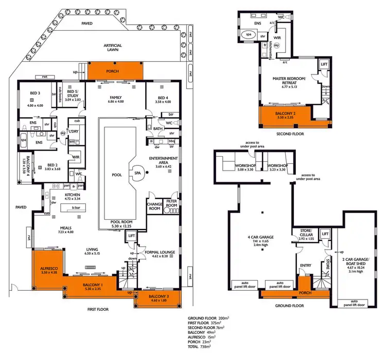 Displaying a commanding faade & position perfect, over 700sqm of luxury living over 3 levels (including 4 person lift). There is ample car parking with the huge 6-car garage/or 4 + boat shed (3.1 metre height), workshop, storage rooms & lockable cellar room.