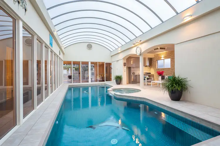 Completed in 2009 by Scott Salisbury Homes, this sensational, custom-built residence is centred by a family-size gas & solar heated, tiled indoor pool & spa, including fabulous kitchen facilities.
