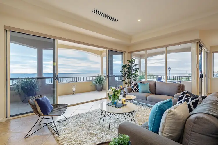 Upper Level:- This entire level is dedicated to the indulgent master suite, enjoying magnificent sea views, featuring picture windows & sliding door access to the private balcony. The master suite also provides a stylish kitchenette alongside of the spacious his & her walk-in robes & a 7-star ensuite, including under floor heating.