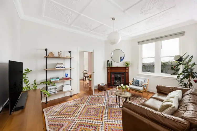 Original period details including high ornate ceilings, front stain glass window, timber floors and decorative fireplaces bring warmth and charm to the home, while the modern addition makes family life a breeze. The spacious formal living provides a cosy retreat, while a unique dining space with custom banquette seating with inbuilt storage connects to the light-filled kitchen. Appointed with Bosch gas appliances, streamlined storage and a large central island, the kitchen flows to a wide entertainer's terrace framed by open sky and lush greenery, perfect for alfresco dining.