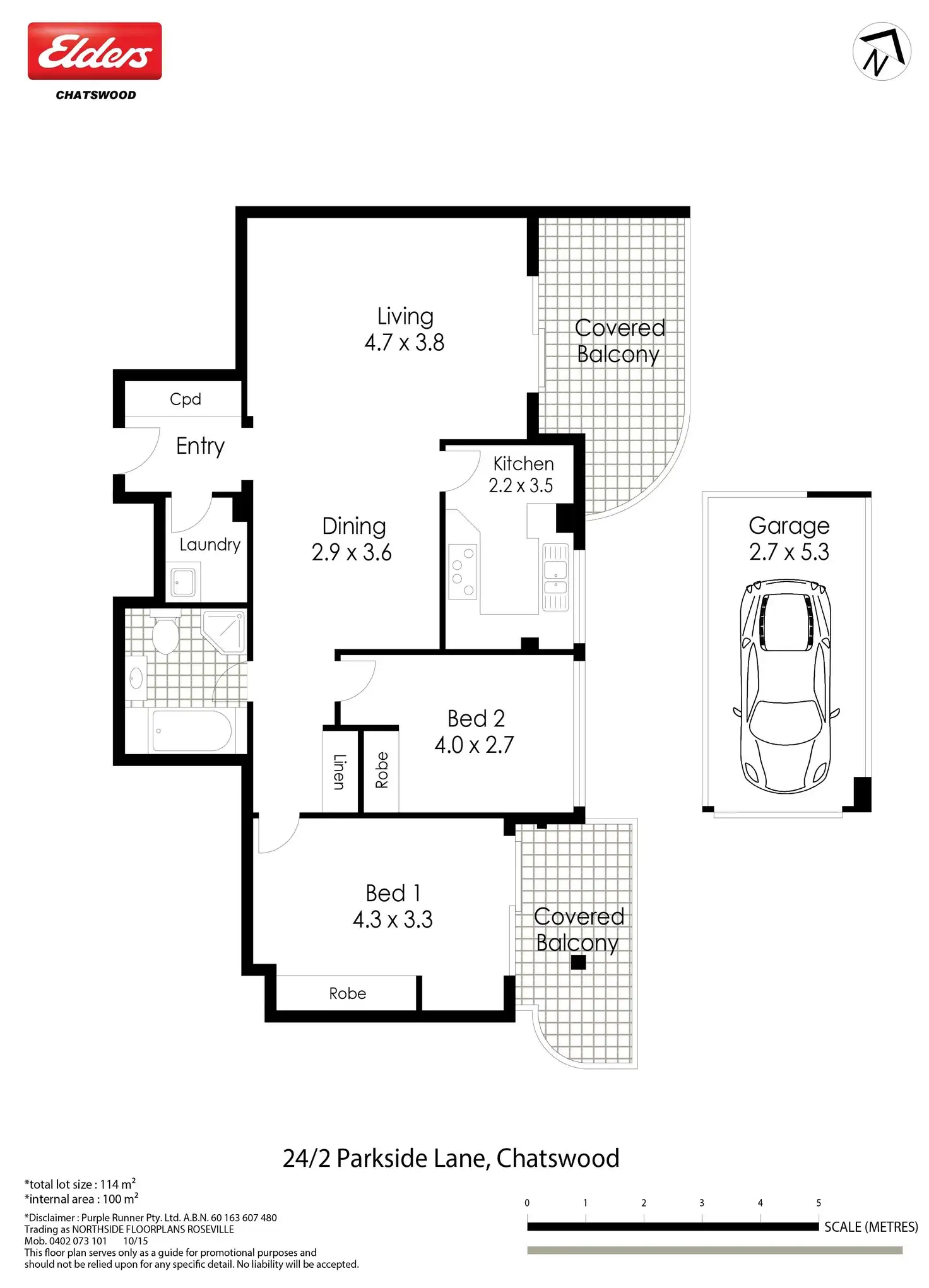 2 Bed • 1 Bath • 1 Car • 114m²