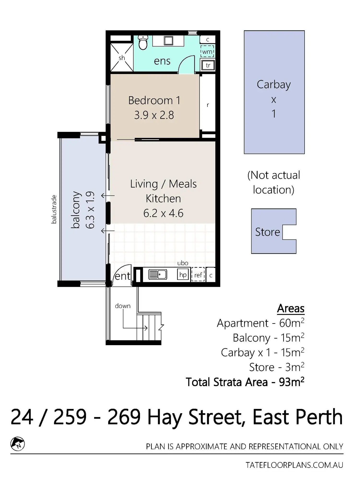 - 60sqm of internal living area, 15sqm entertainer's balcony, 15sqm car bay, & 3sqm storeroom