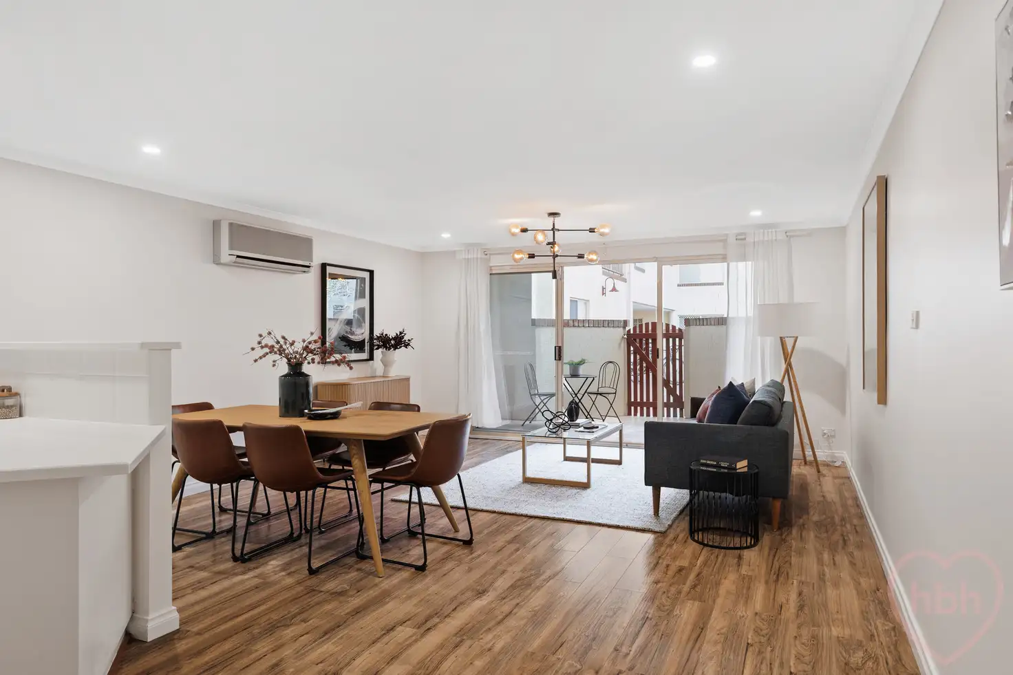 .open plan kitchen, dining and living spilling to private terrace with gated access to the common patio and gardens