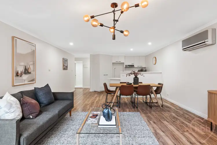 Light bounces off the crisp white walls and easy-care timber laminate floors flow underfoot. The paired-back scheme delivering a fresh and airy simplicity. Sunlight reaches into the open plan, kitchen, dining and living as glass sliders open to a spacious terrace. Here high rendered garden walls privatise and enclose and a picket gate delivers you straight access onto the broad tiled commons, stepping down to the enchanting gardens. Think plating take-out or cooking up a storm within the perfectly arrayed kitchen, spilling to patio with friends for a drink before you head out on the town.