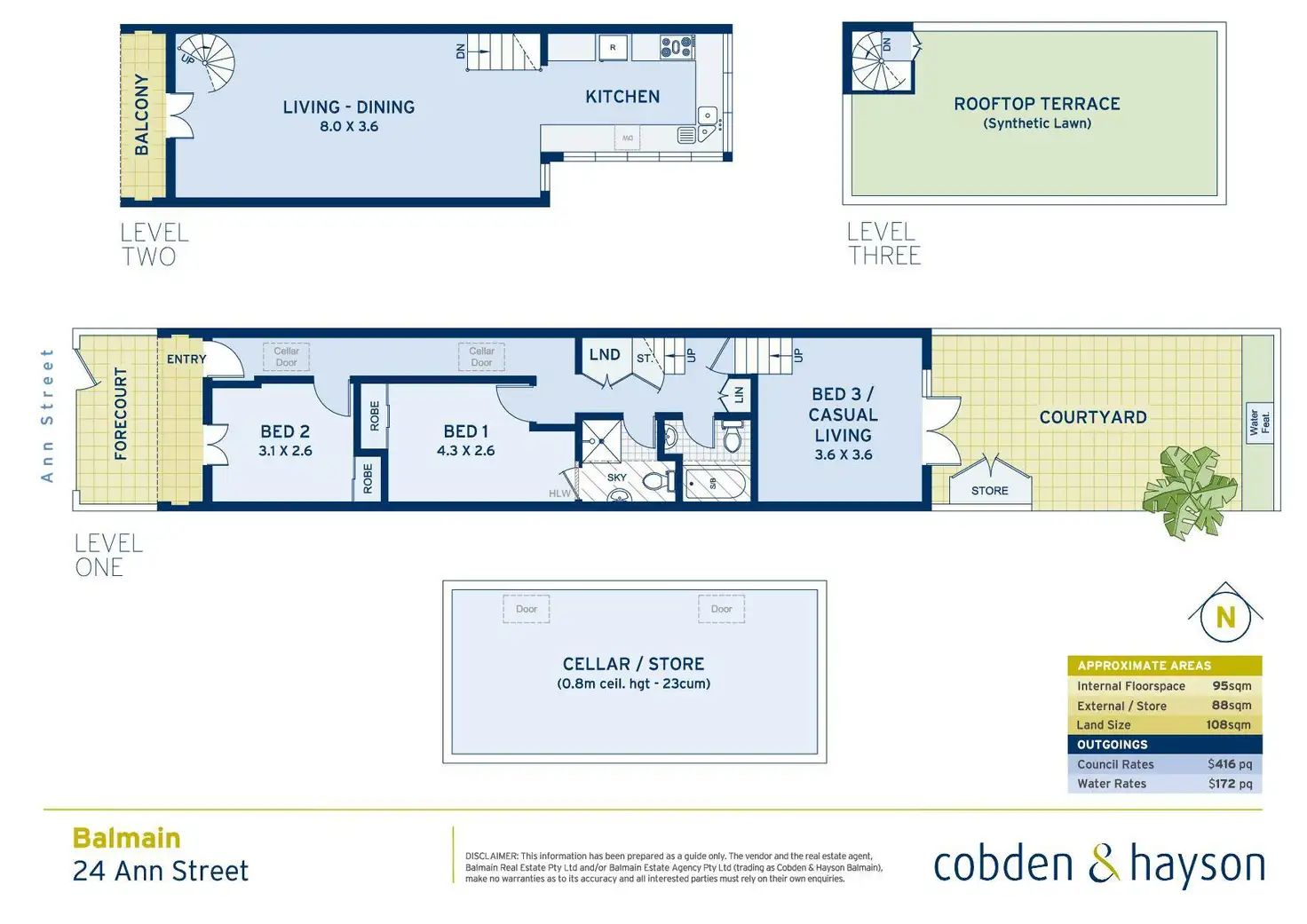 3 Bed • 2 Bath • 0 Car • 108m²