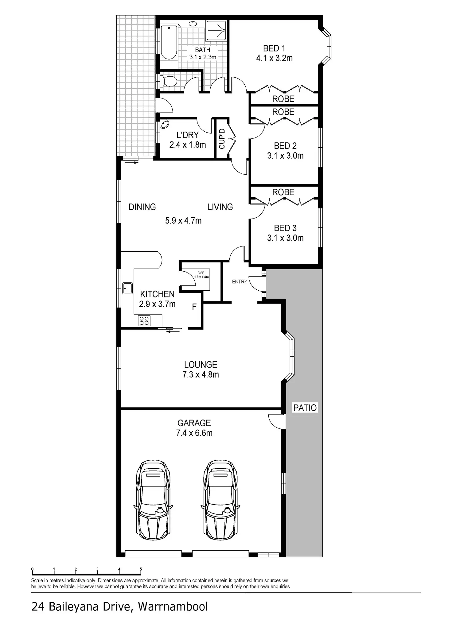 3 Bed • 1 Bath • 2 Car