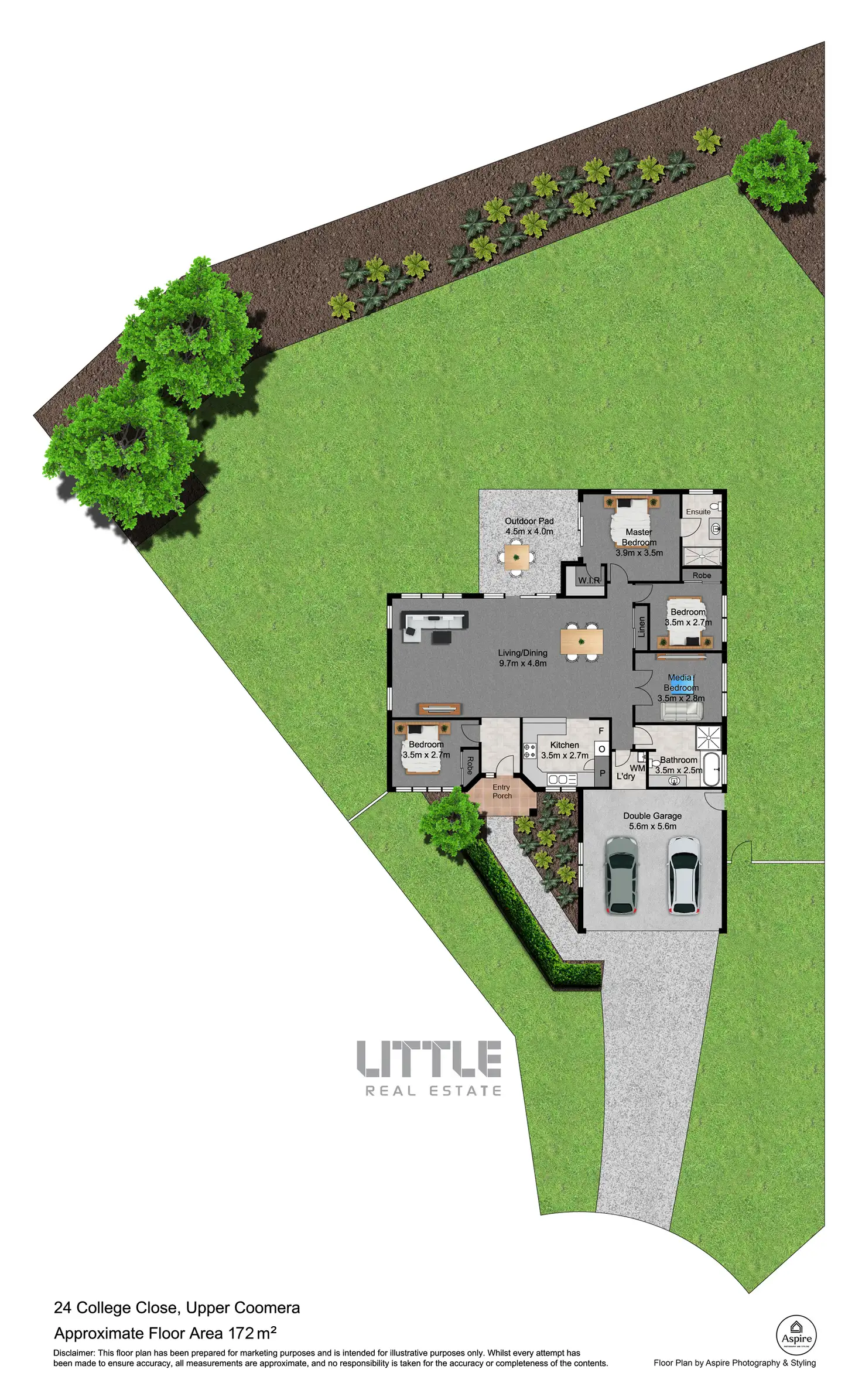 Disclaimer: Little Real Estate has not independently checked any of the information we merely pass on. We make no comment on and give no warranty as to the accuracy of the information contained in this document which does not constitute all or any part of any offer or contract by the recipient. Prospective purchasers must rely on their own enquiries and should satisfy themselves as to the truth or accuracy of all information given by their own inspections, searches, inquiries, advices or as is otherwise necessary. No duty of care is assumed by Little Real Estate toward the recipient with regard to the use of this information and all information given is given without responsibility.