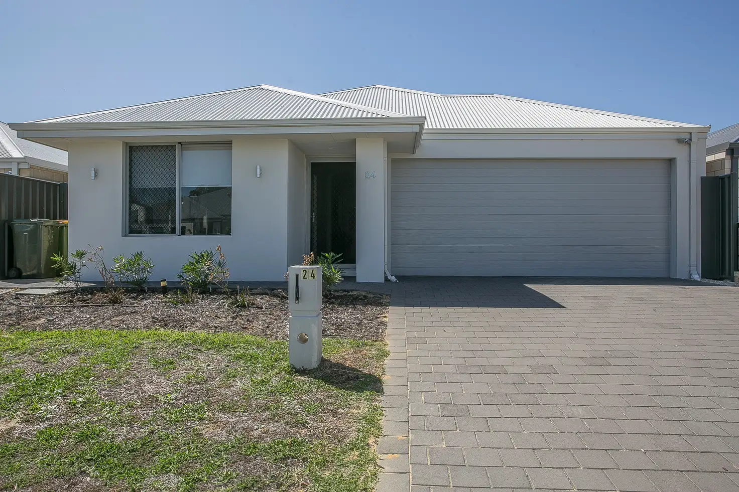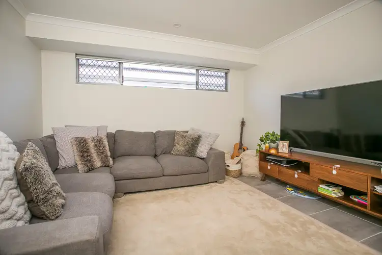 Situated in the newly developed suburb of Lakelands, this property is close by to parks, walking paths, and bush reserves. To the front of the house, there is a remote double car garage, as well as driveway space for two cars to park. A lawn and mulched garden bed area provide a bit of greenery, and there is a side gate to the back yard.