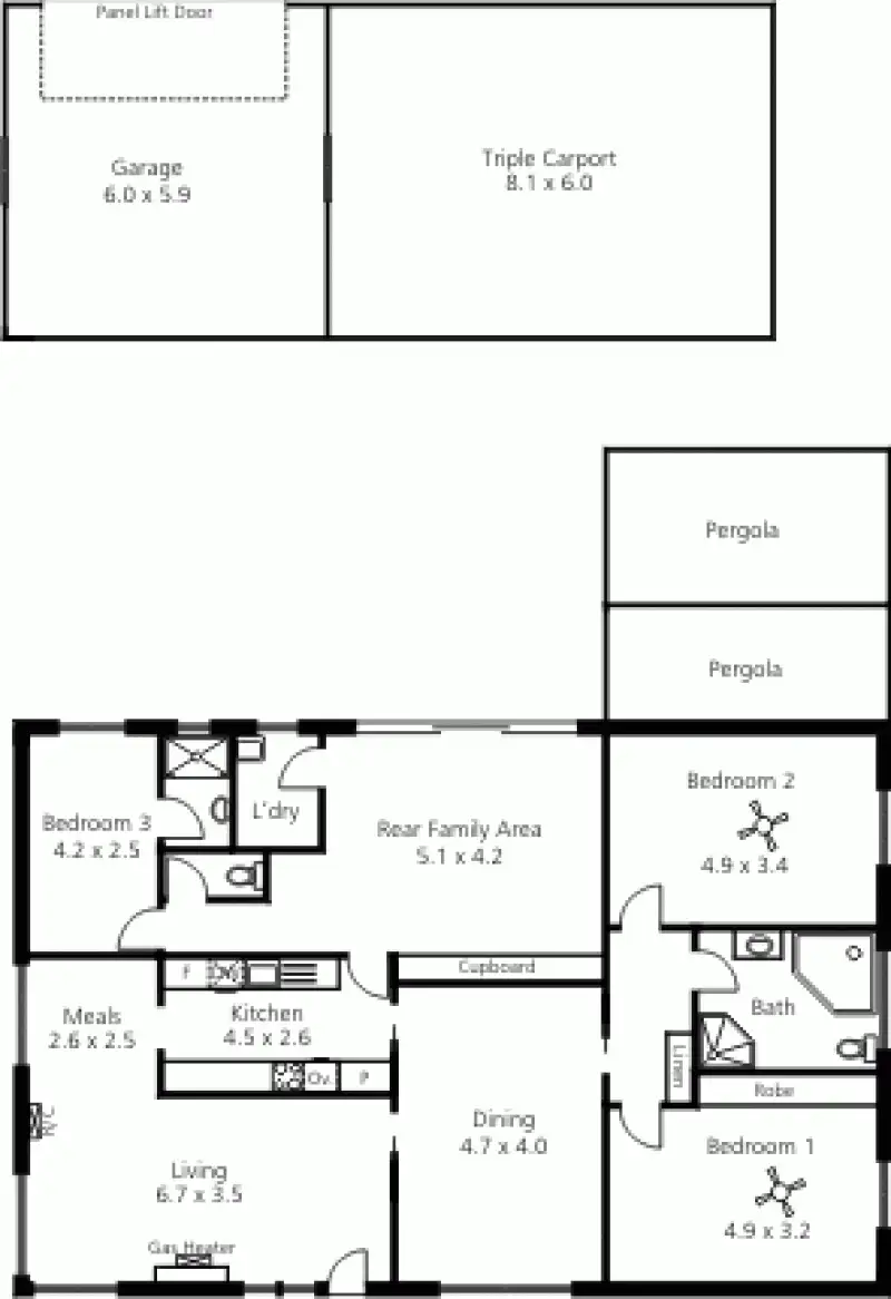 “Access from rear of block to 3 bay carport plus garage”