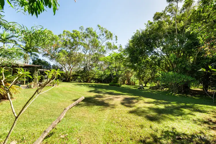 The grounds are fully useable and totally flat, with established shady trees – a mixture of natives and tropical, and there is masses of room for a pool, if desired. The property is very private with a dense stand of trees screening it from the road, and it's a whisper-quiet peaceful neighbourhood…a truly wonderful place to embrace gentle living in harmony with nature.