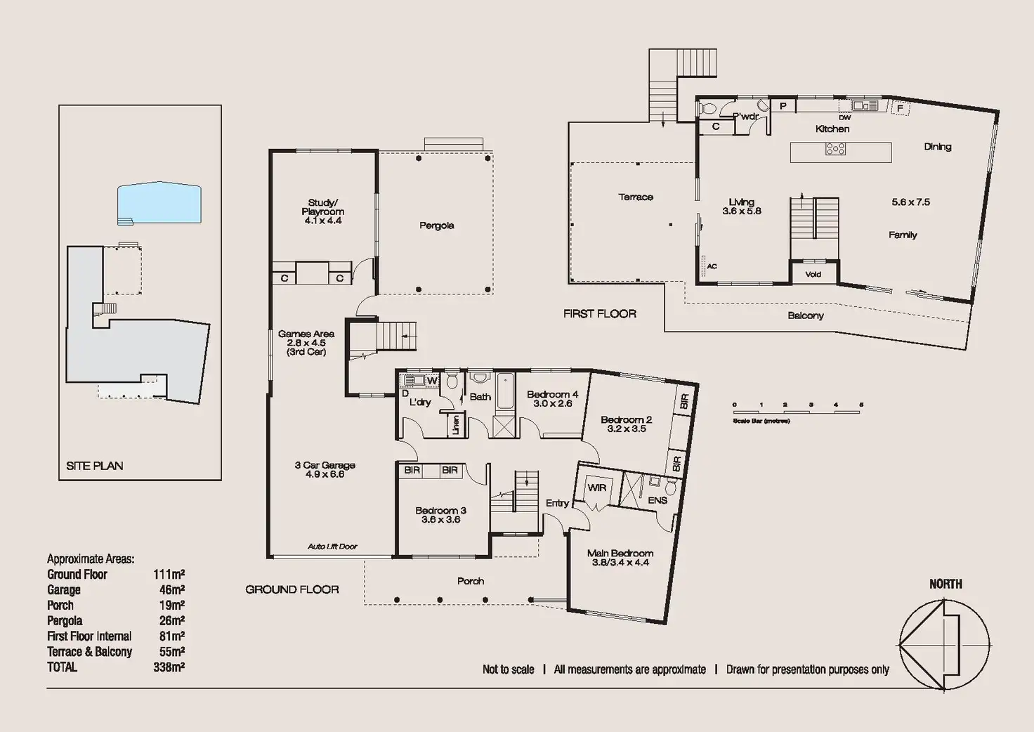 An external stairwell spills down into the rear courtyard and gardens where further outdoor entertaining spaces are shaded under pergolas with the scent of orange and mandarin blossom from established trees in the courtyard. Expanses of lawn surround a huge solar heated, concrete, below ground pool and invite days on end of family summer fun.