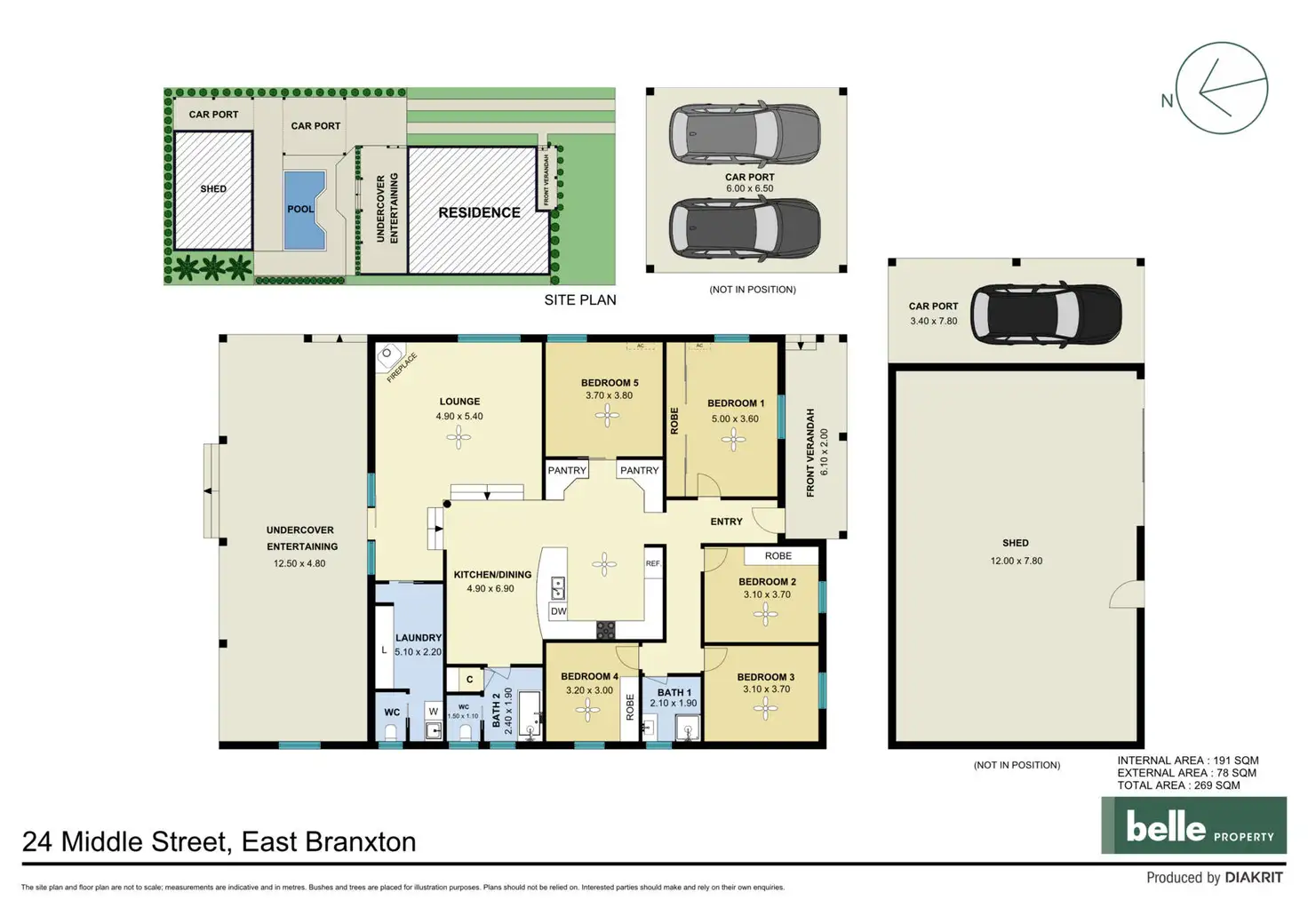 - Five bedrooms create flexi family space, three feature built-in robe