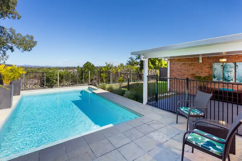 The open plan living and dining areas flow seamlessly through to the large covered, rear entertaining deck, enjoying endless views to the mountain ranges and making it the perfect location to relax or entertain family and friends all year round. This space also overlooks the pool and fully fenced flat rear yard, offering a secure environment for kids and pets to play safely.