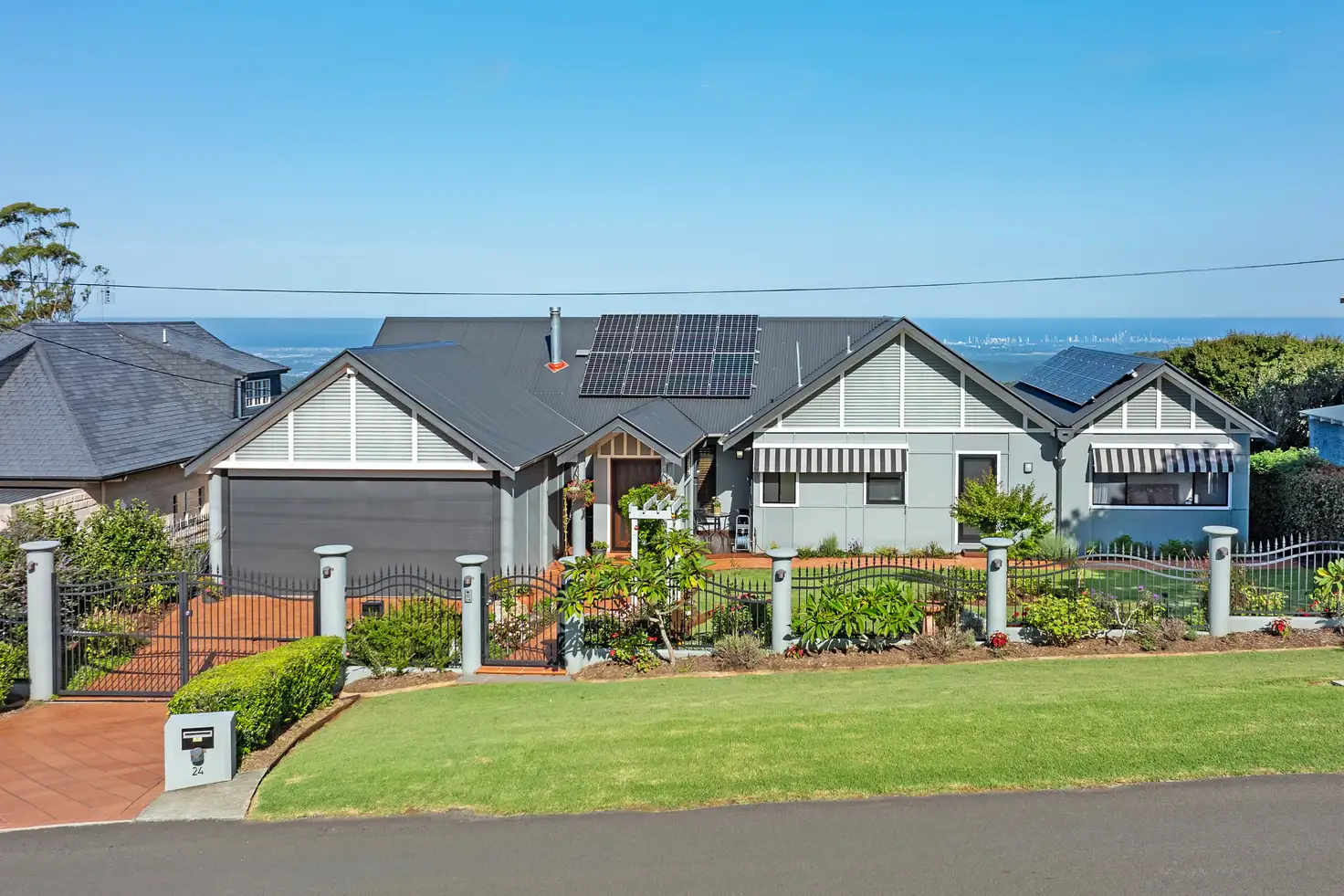 Welcome to 24 Paradise Drive, a home that truly lives up to its street name. Perched atop the ridgeline on a quiet street, this property boasts breathtaking, uninterrupted coastal views from Stradbroke to Coolangatta, seamlessly blending traditional character with modern luxury. From the gabled roof and charming façade to the easy-care cottage gardens, you'll discover a true sense of home within its walls paired with the wow-factor of the views that its location affords. Whether you're relaxing on the verandah or entertaining family and friends, every corner of this home invites you to live your best life.
