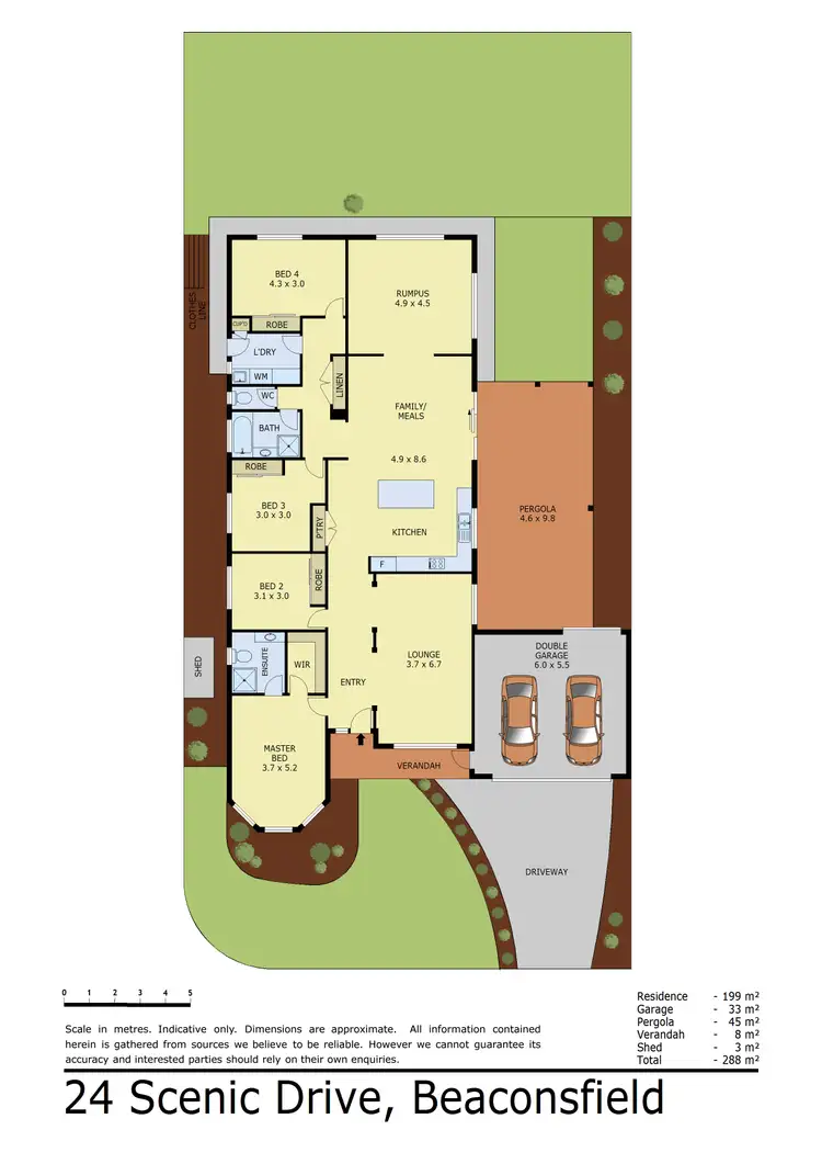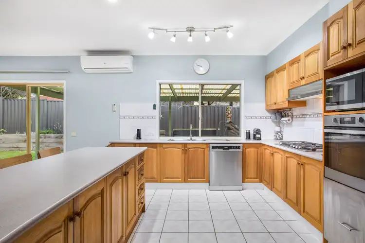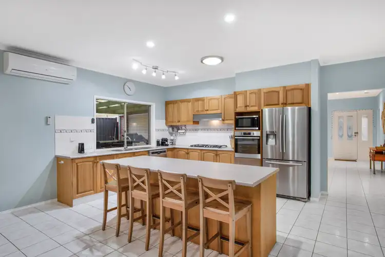 The master bedroom has extra space with a bay window, split system AC, ceiling fan, ensuite and completely fitted out walk-in robe. The 3 remaining bedrooms have built-in robes and are serviced by the main bathroom with a separate toilet and a laundry with loads of storage. The double remote garage also has a single remote rear door, providing easy access to a massive 9.8m long pergola, for extra parking and another dining option.