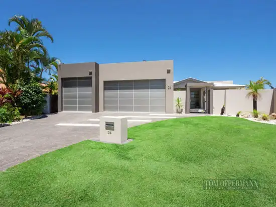 Features: 864sqm absolute waterfront allotment with 30 metre water frontage, wet edge pool and water feature, under roof terrace, courtyard gardens, automated privacy blinds and windows, spa bath, remote adjustable louvres, air-conditioned, ducted vacuum, fixed (night-lit) timber jetty, boat winch, three vehicle garage/high span access, extensive storage, 22 Solar Panels generating 4.9 K/Watts, security lock access to the Noosa River.