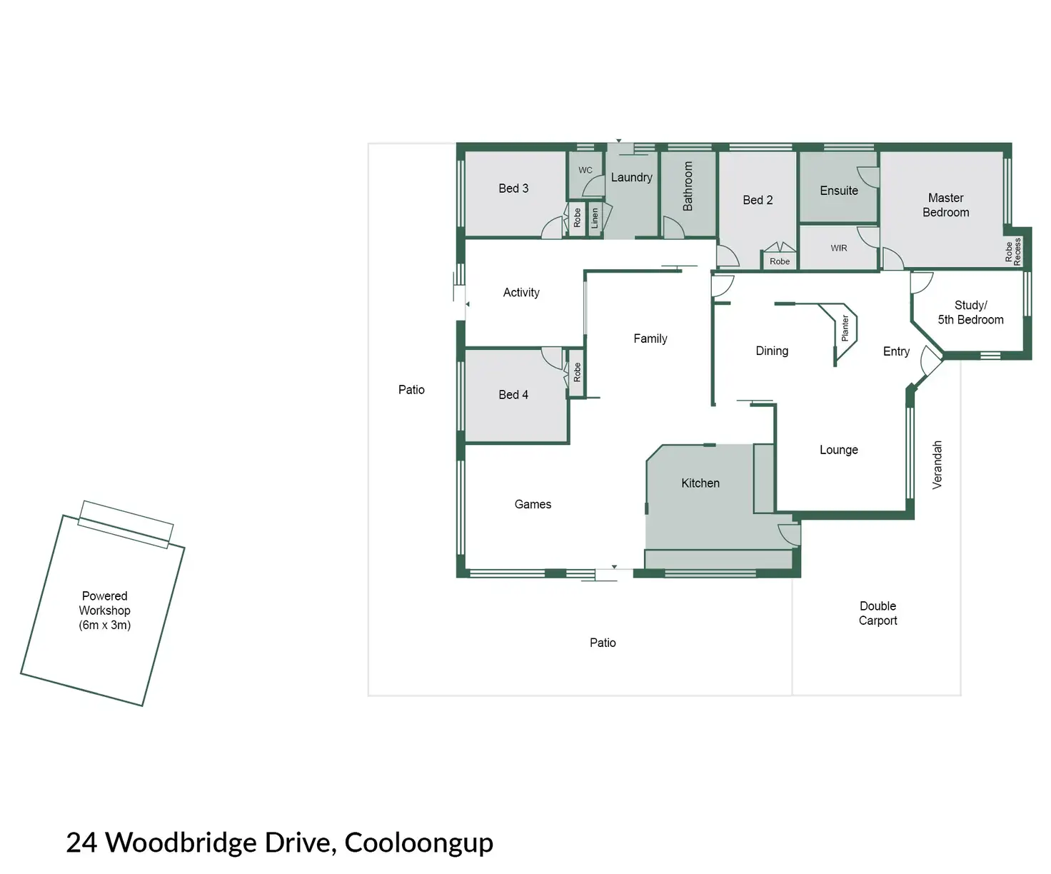 - Large wraparound patio off the games room for outdoor entertaining and parking additional vehicles
