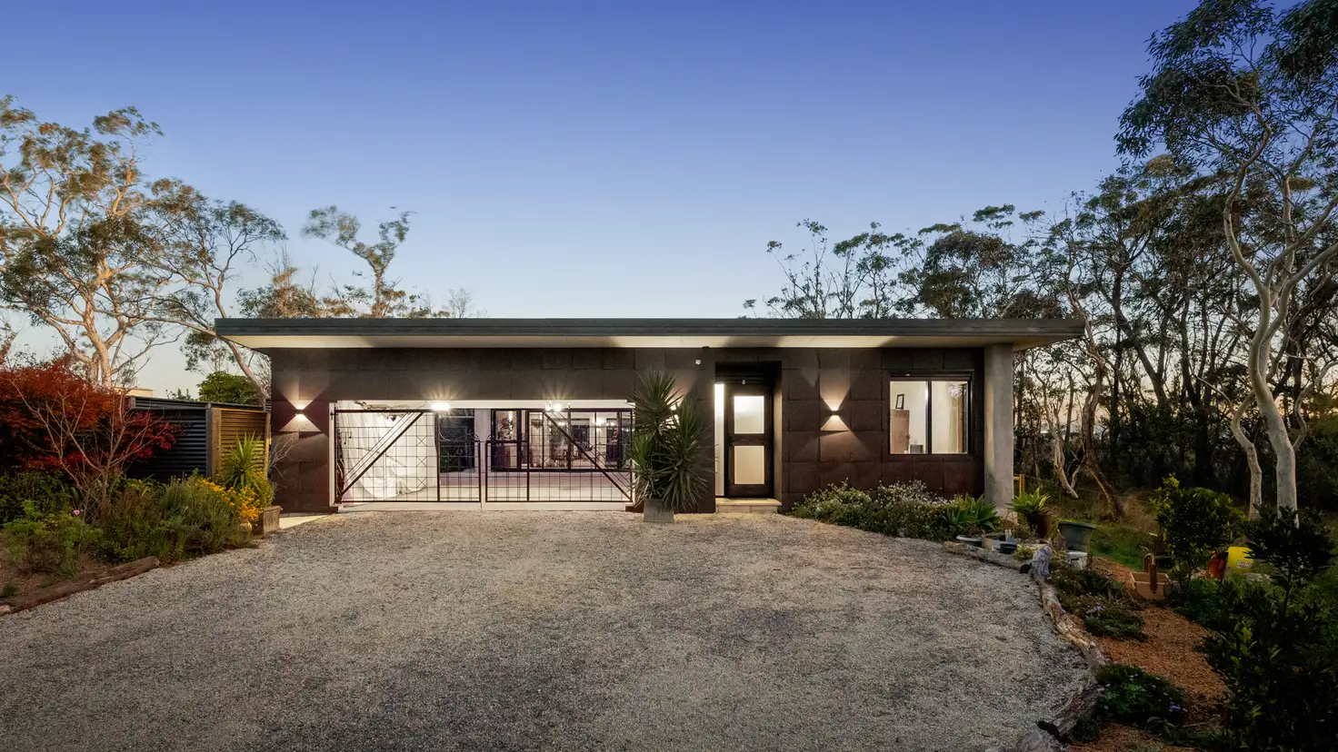 - Low-maintenance gardens with raised veggie beds, chook shed, firewood store