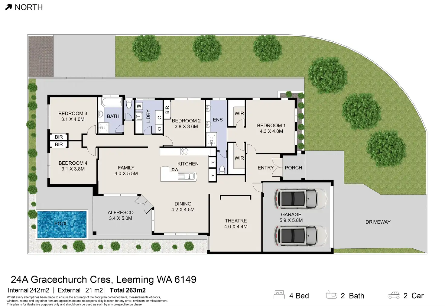 - Landscaped, fully reticulated gardens