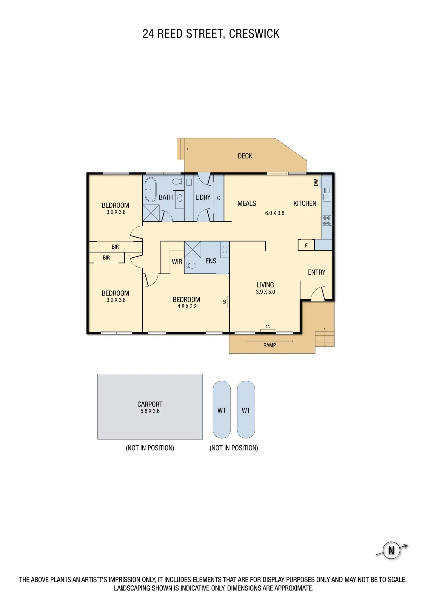 We are delighted to present this immaculate, newly built three-bedroom townhouse at 24A Reed Street, Creswick. Positioned on a 405 m² fully landscaped and flat block, this property offers a modern, low-maintenance lifestyle in a highly sought-after location. Ready for immediate occupancy, this home is ideal for those seeking convenience and comfort, with the added benefit of being just a short stroll to Creswick’s walking tracks, train station, shops, bus stop, sporting facilities, and all essential amenities.