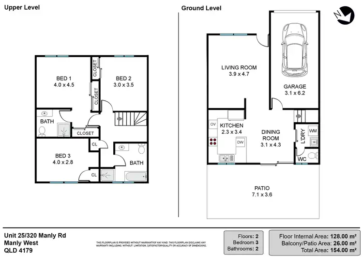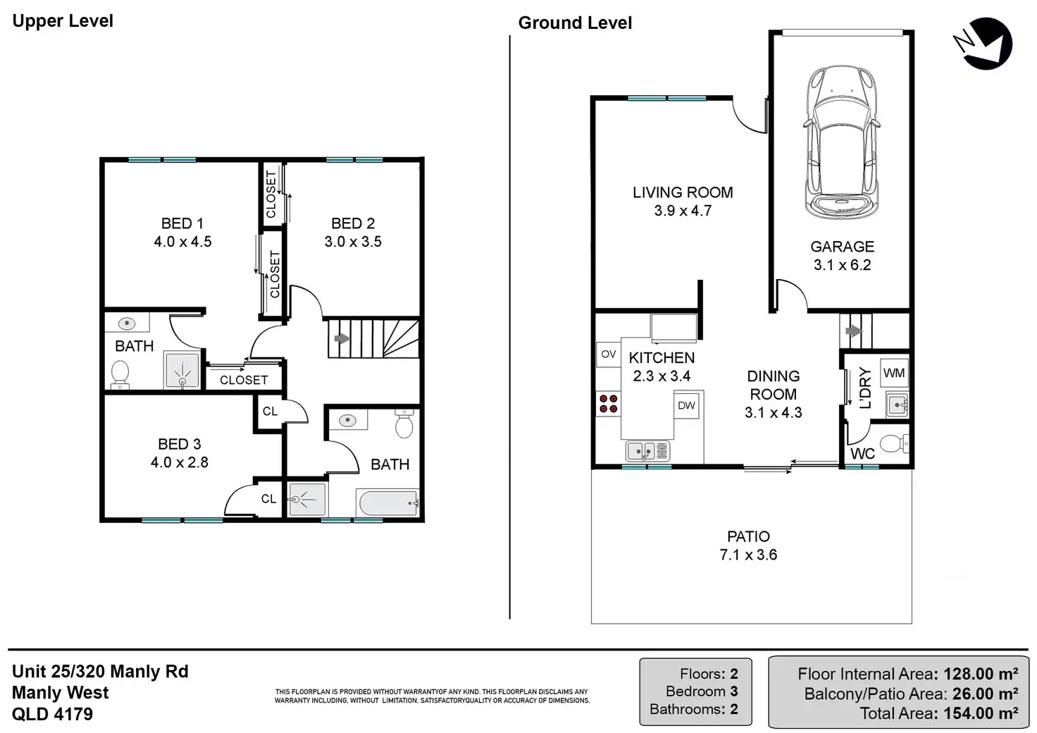 3 Bed • 2 Bath • 1 Car • 125m²