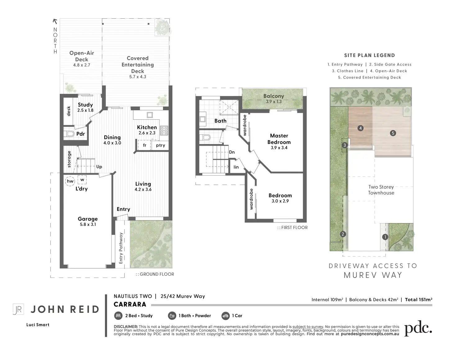 A dedicated study with deck access provides a quiet retreat, while a guest powder room and a single lock-up garage with laundry provisions enhance functionality. Upstairs, two generous bedrooms feature built-in robes, with the master retreat enjoying a private balcony. The elegant bathroom impresses with a walk-in shower, floor-to-ceiling tiles, and a separate toilet.