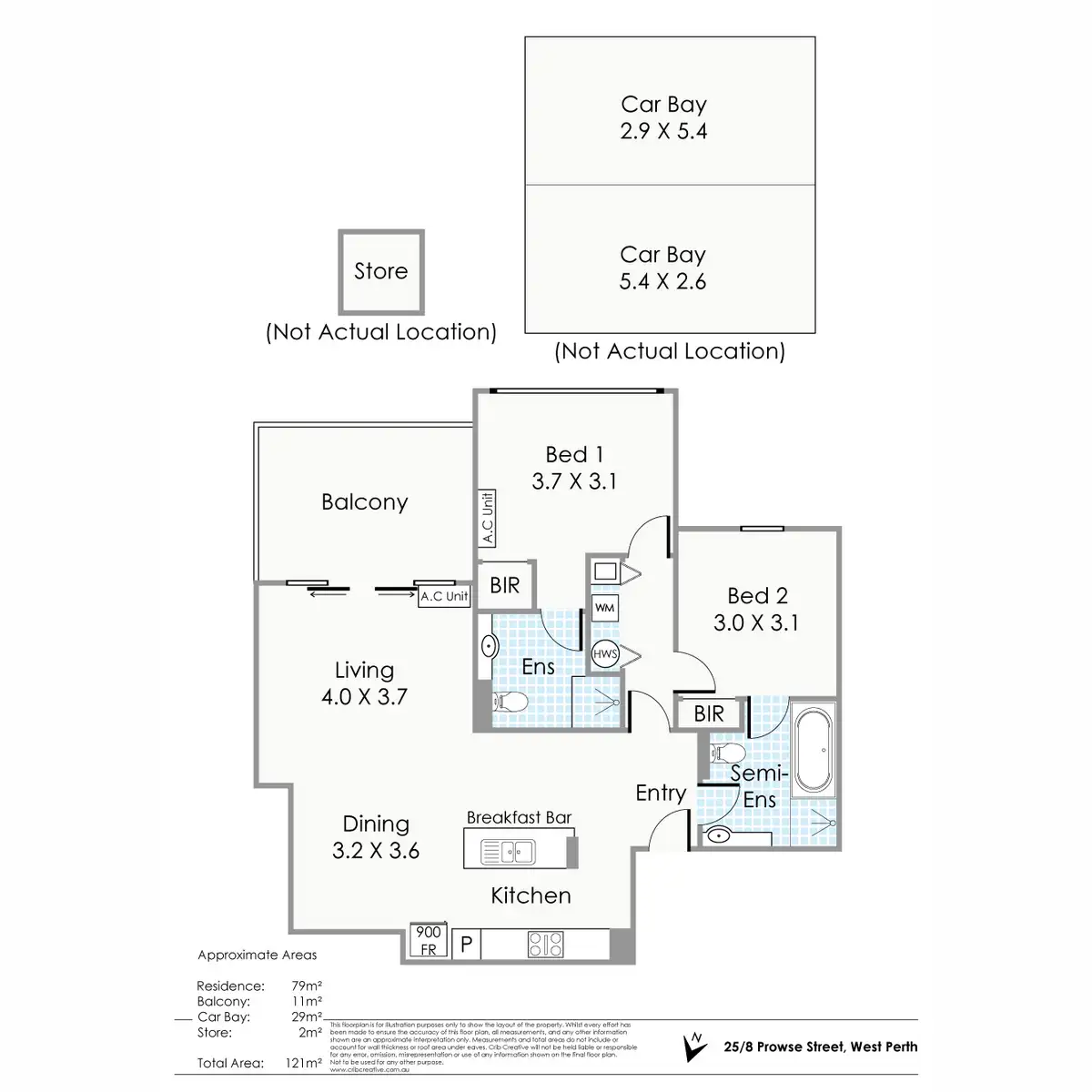 “2 Bedrooms, 2 Bathrooms, 2 Car Bays”