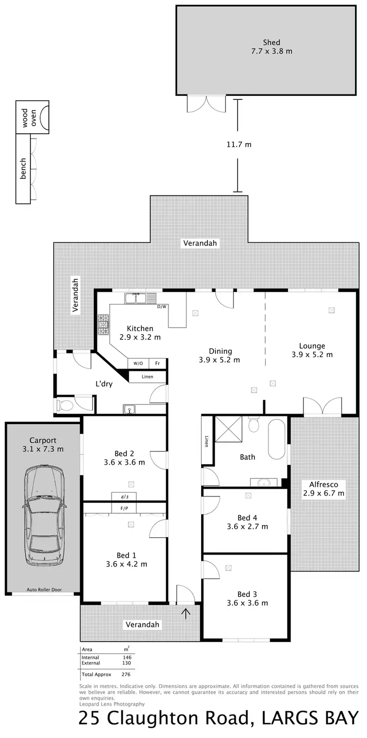 The carport has a lead light panel lift remote control door that will accommodate a large car with plenty of room for extra storage.