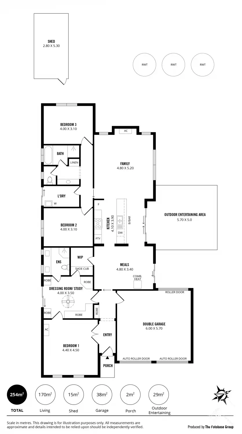Slow Combustion Heating & Fans, approx 5 KW Solar, Fruit Trees, 15, 000 litre r/water plumbed, Roller ShuttersBuilding details