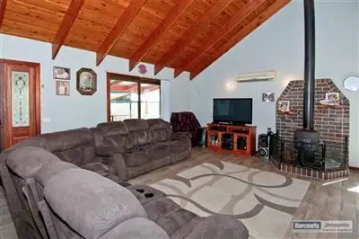 Property Type: House House style: Lowset Construction: Brick Joinery: Timber, Aluminium Roof: Colour steel Walls / Interior: Gyprock Flooring: Tiles and Carpet Window coverings: Drapes Chattels remaining: Blinds, Drapes, Stove Kitchen: Original, Dishwasher, Double sink and Breakfast bar Main bedroom: Double and Built-in-robe Bedroom 2: Double and Built-in / wardrobe Main bathroom: Bath, Separate shower Laundry: Separate Workshop: Combined Views: Rural Outdoor living: Entertainment area (Covered, Concrete), Spa Fencing: Fully fenced Land contour: Flat to sloping Grounds: Backyard access Garden: Garden shed (Sizes: 3x3) Sewerage: SepticLand details