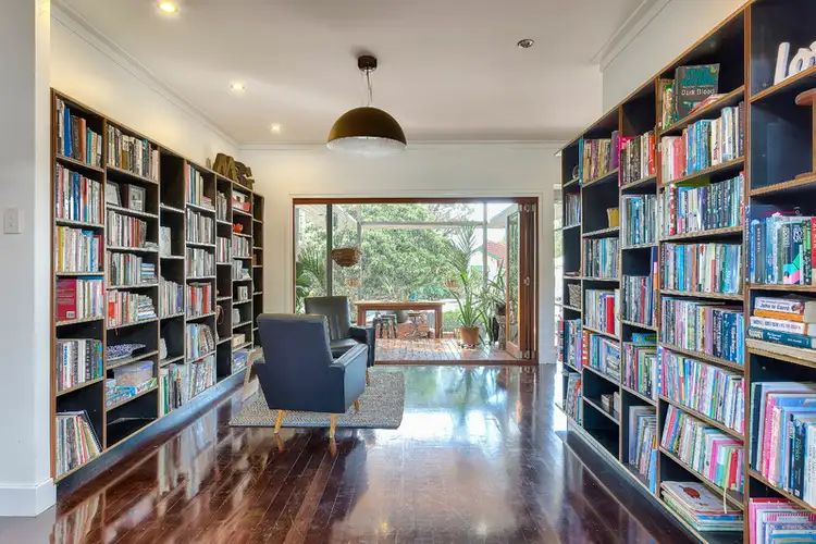 From its smart black-shelved library to its crisp white kitchen, this 1950s home has been cleverly reconfigured and extended to attract cool breezes and provide separation of living. Up the steps and across the covered front verandah, visitors are welcomed into the central stylish reading room, which links the two zones of the house: the living and the sleeping quarters. With polished floors throughout, the home is perfect for entertaining and for large or extended families, offering multiple inside and outside living areas plus guest accommodation (or a studio) in the rear garden. Fly-over roofs at the front and back provide extra living space all year round and the current owners rarely close the bi-fold doors.