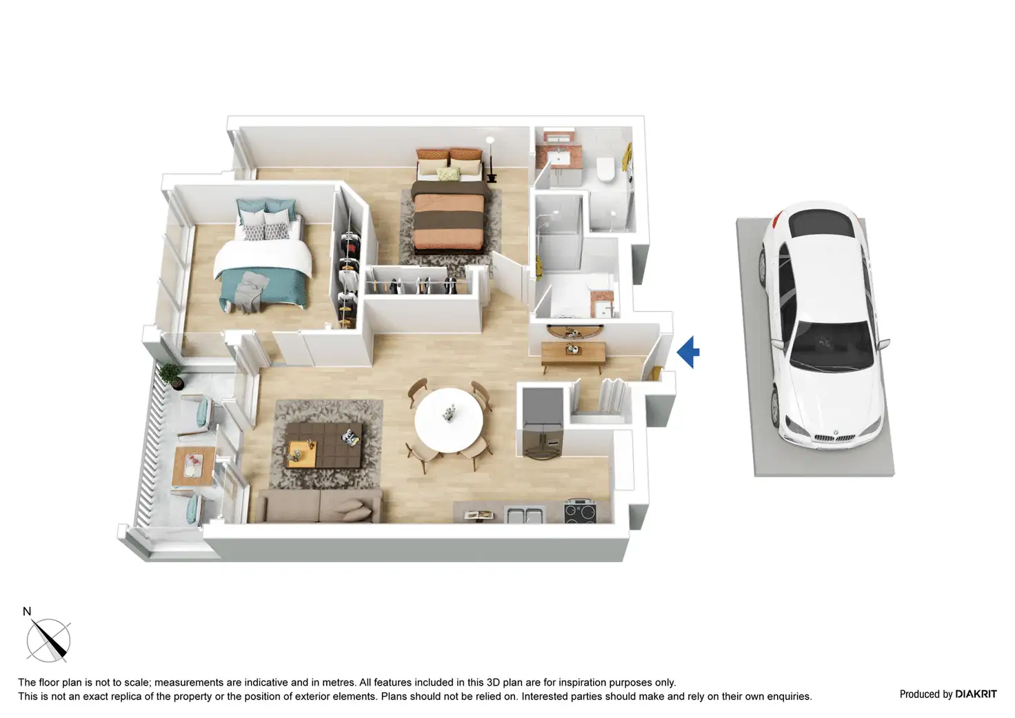 Both generously sized bedrooms are naturally lit, serviced by mirrored built-in robes and a pristine pair of fully tiled bathrooms with stone detailing. The master suite is also graced with a sunlit study nook, the ideal companion for work-from-home days. Special features include secure parking, Euro-style laundry with a washing machine and dryer, ducted heating and cooling, motorised blinds, double glazing and recessed down-lighting.