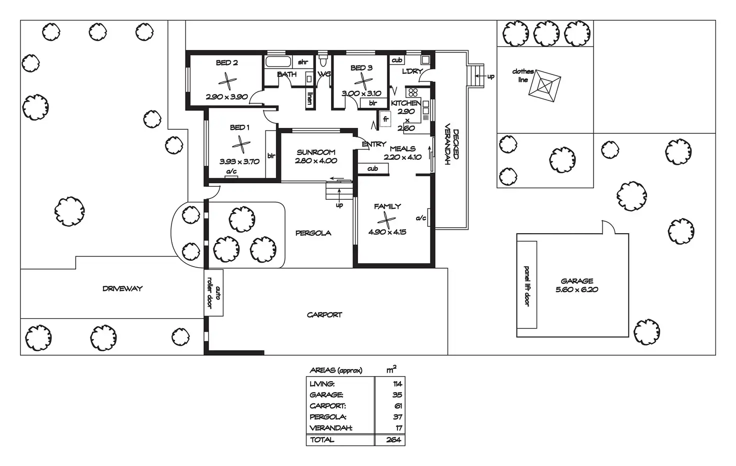 * Drive-through tandem carport with auto roller door