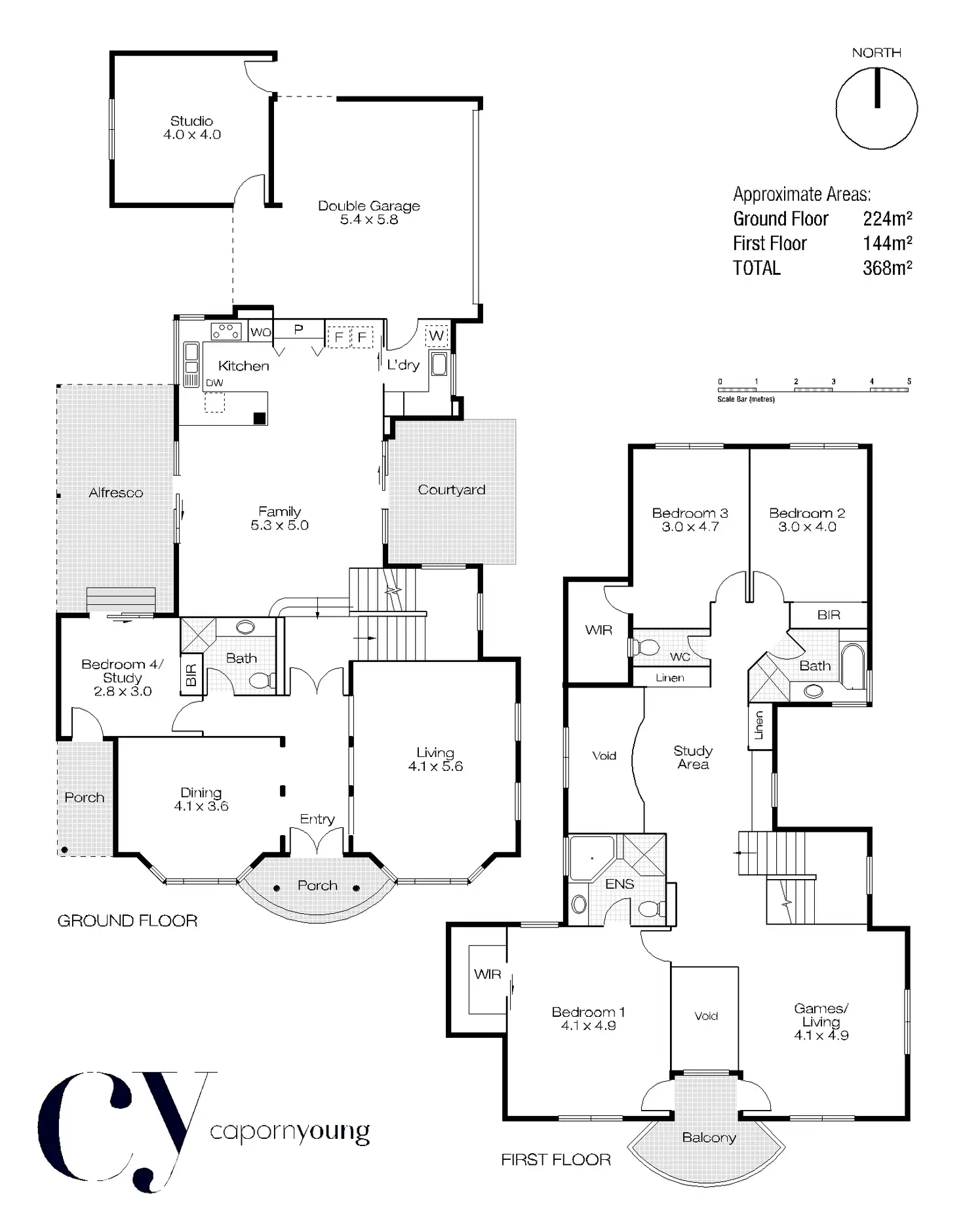 Upstairs there is yet another living room, as well as a study area. Airy and light filled voids connect the upstairs and downstairs zones, and add a touch of architectural flair. There's space for a family to comfortably spread out, with two children's bedrooms & a bathroom at one end of the upper level, while the master suite has a quiet position at the front.