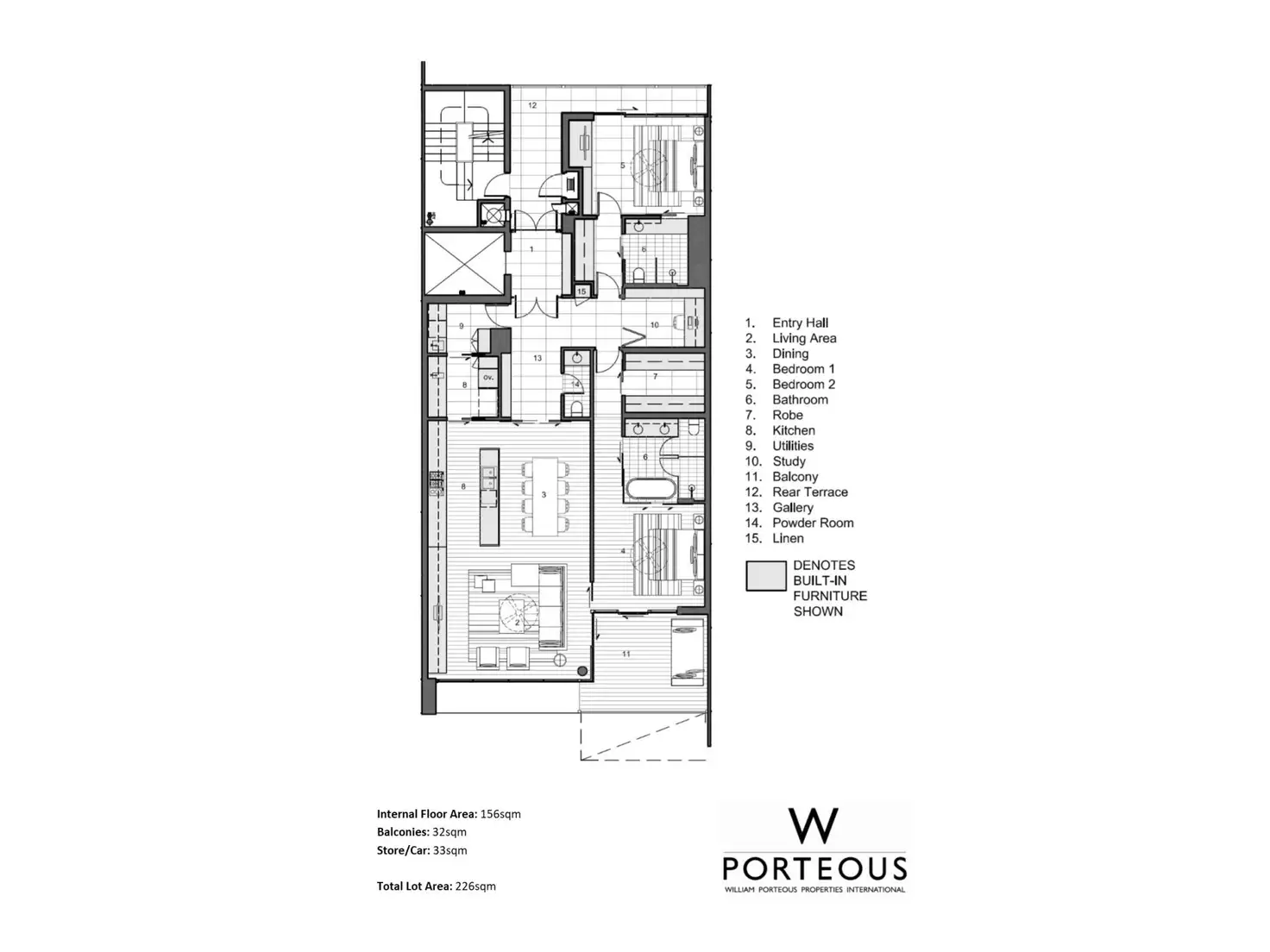 Access to the apartment is through a private lift that opens in to the foyer and also takes you down to the basement where your double car bays and storage facilities are.