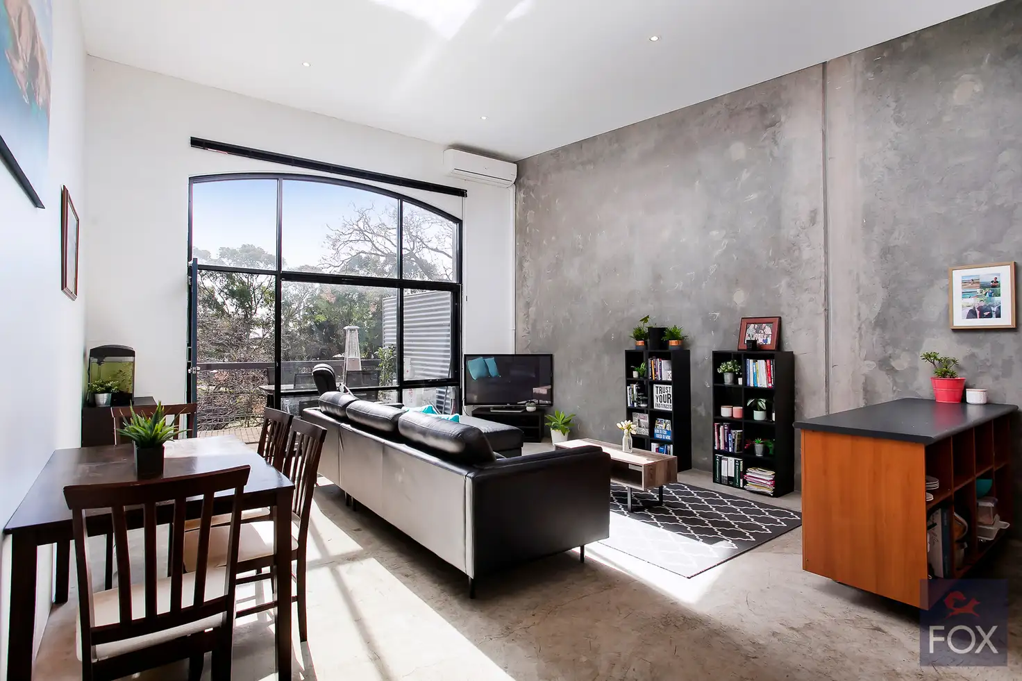 “Warehouse style with towering windows and outdoor entertaining area overlooking peaceful Linde Reserve.”