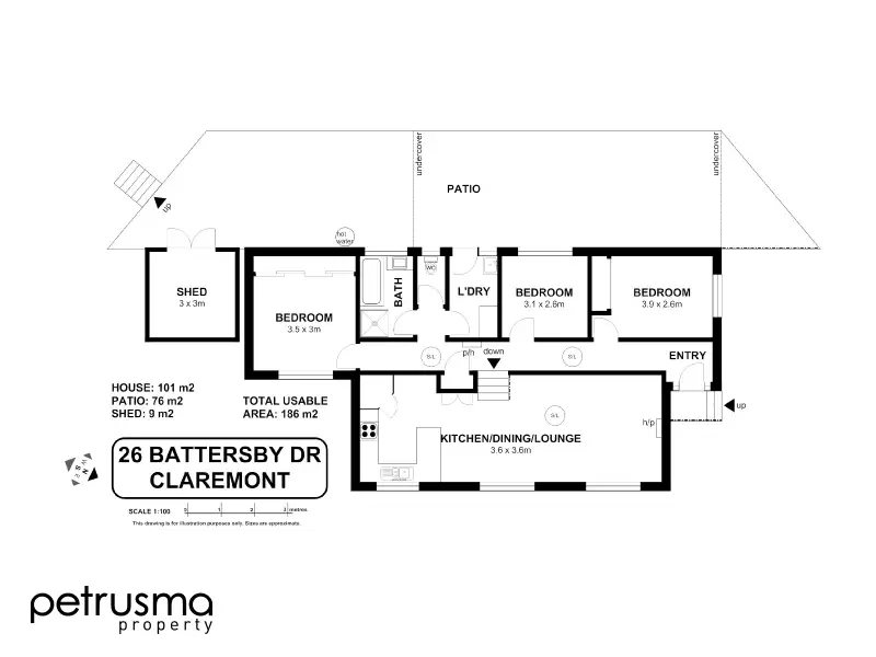 The 3 bedrooms are all of a decent size, 2 have built ins, and the master bedroom boasts a large and stylish 4 door gloss finish built in which really sets off the room. Outside is an entertainers delight with an enormous concrete patio area, a large area enclosed and also a decent area exposed. There are easy care, well established gardens, a driveway to fit 3 cars, and a large fully fenced yard with a good size garden shed.