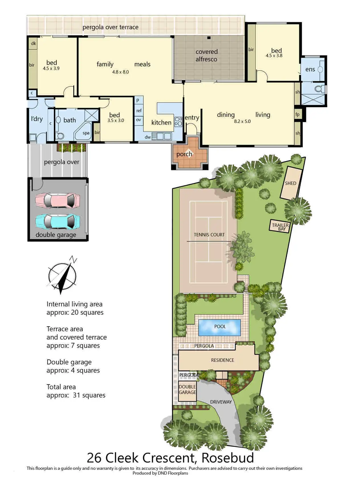 Outside a pergola links the house to a separate powered double lock-up garage, in keeping with the style of the house and which could easily be converted into a granny flat or man cave if desired (STCA).