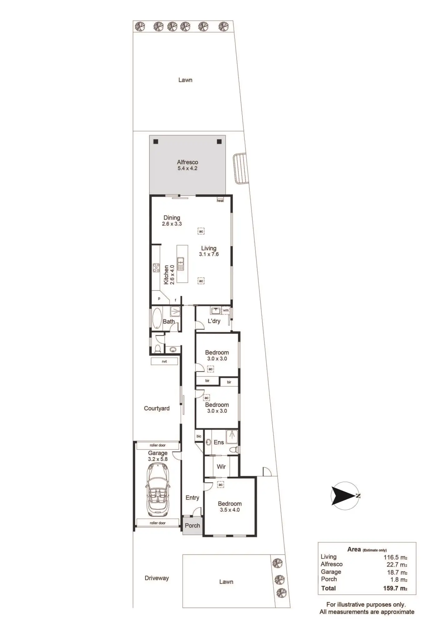 The spacious alfresco area is perfect for year round entertaining, and overlooks the secure back yard. A spacious lawn area offers the perfect space for children and pets to play, or add garden beds and shedding in the future. Ample off-street parking is available including a drive through garage and driveway parking.