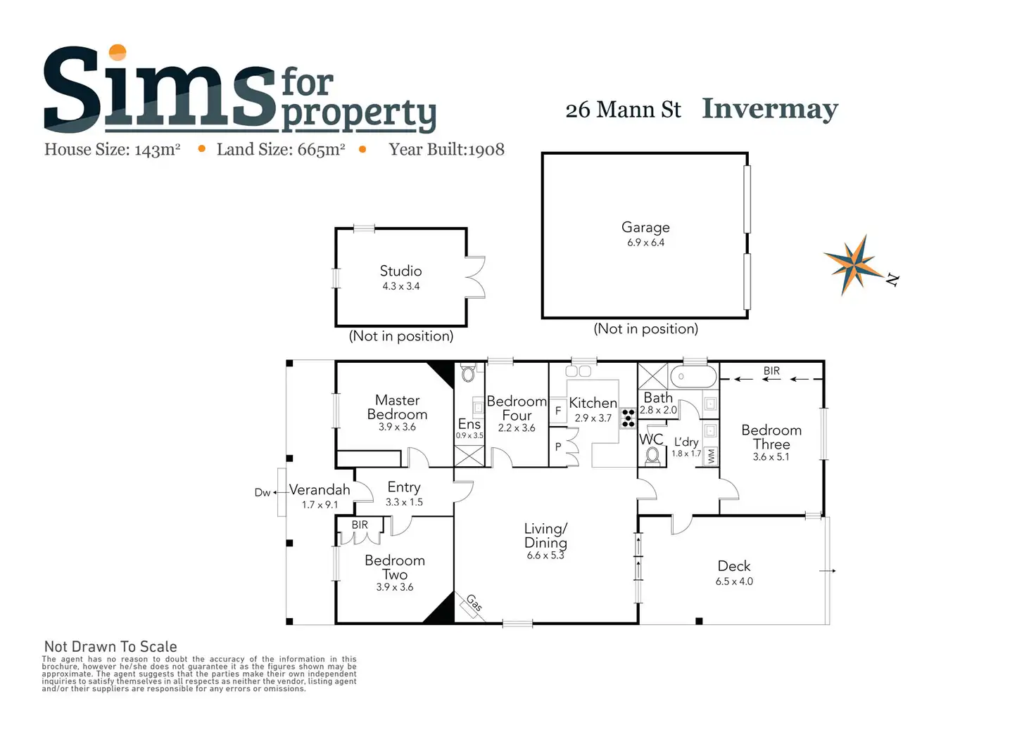 - 6mx7m garage plus additional off-street parking and separate studio;