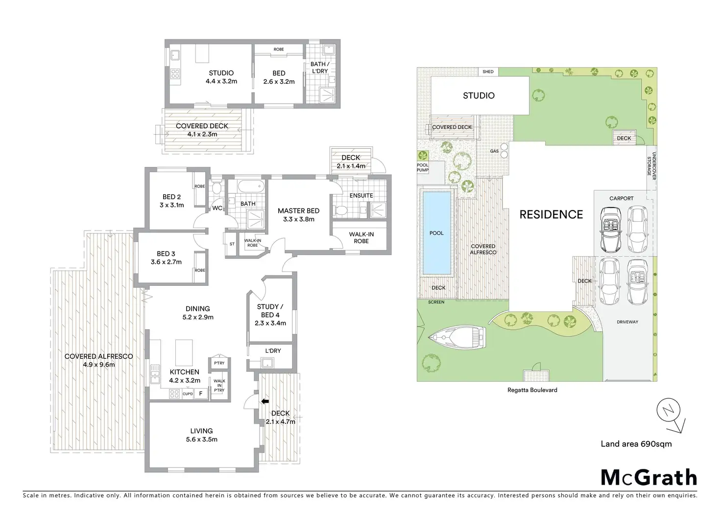 The main residence comprises of four bedrooms including the master suite with his and her robes, stylish ensuite with floor to ceiling tiles, and extended deck with outdoor access.