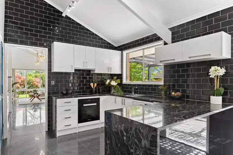 Upon entering the home, you'll be impressed by the vaulted ceilings, large open plan living with ample natural light, stunning tiled floors and large living area. Home chefs will adore the gorgeous kitchen equipped with quality appliances, huge bench space, pantry and lots of cupboard space. The classic white cabinetry looks clean and crisp against the beautiful black granite and floor tiles.