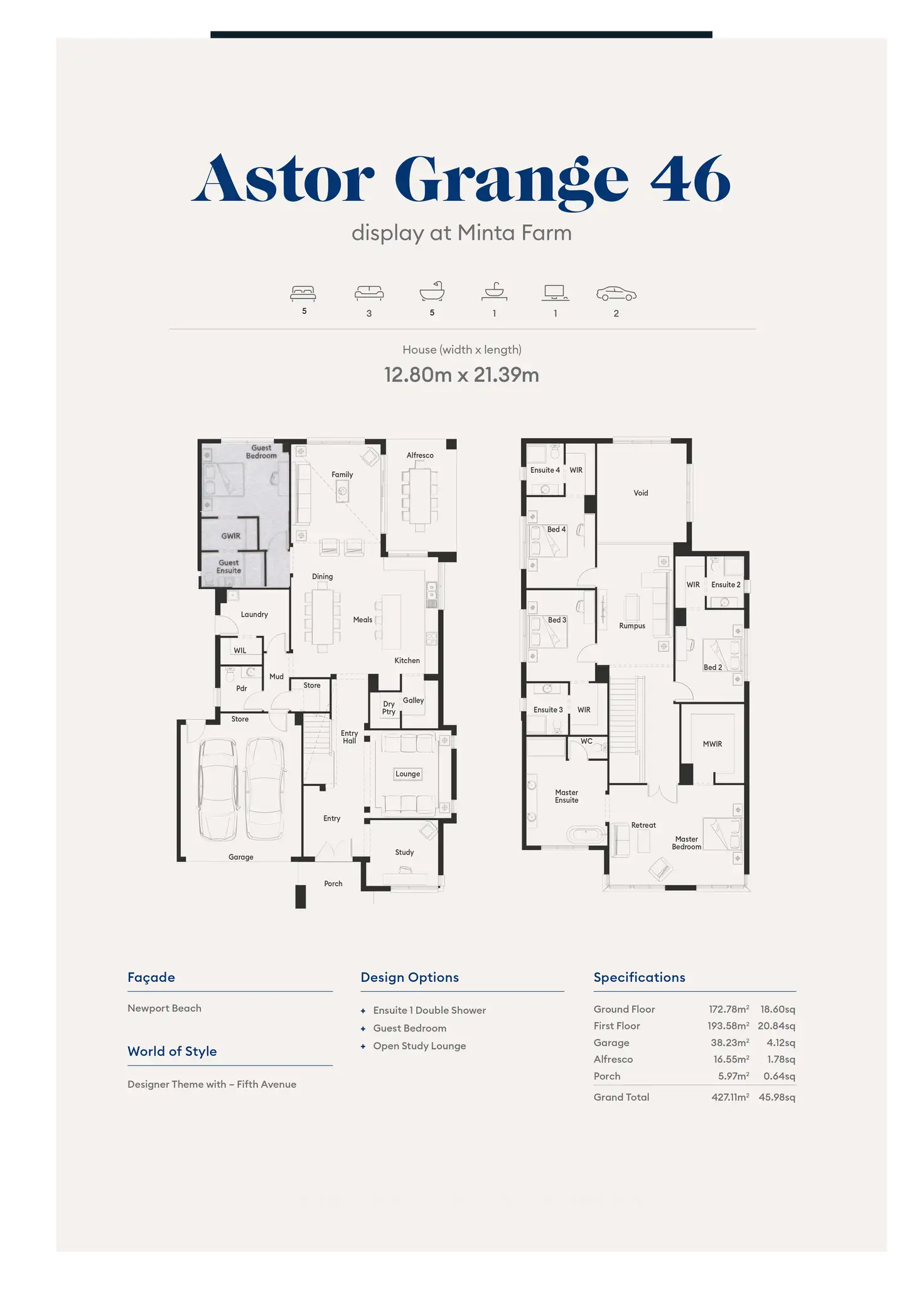 • 5 large bedrooms all with walk-in robes and luxe ensuites