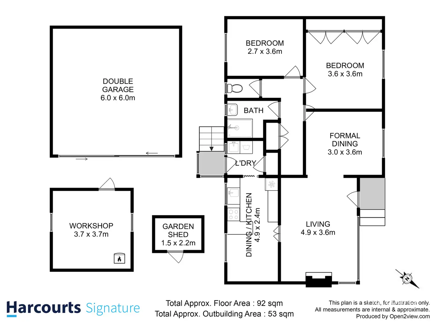 A secure double garage provides housing for multiple vehicles, with ample of off-street parking within the driveway. There is also a garden shed for the ease of outdoor maintenance and storage.