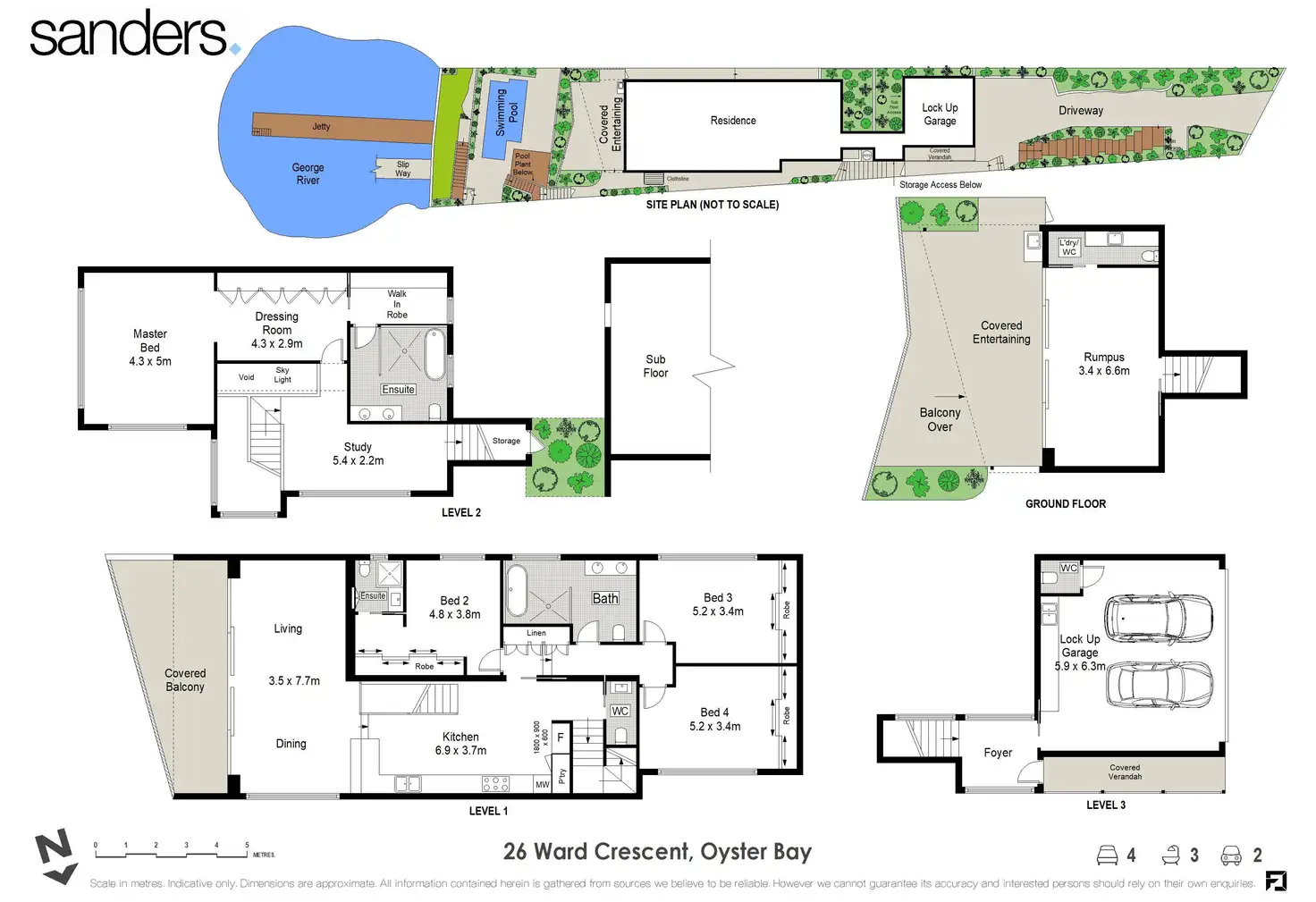 - Sundrenched study/ circulation space with water views, high ceilings & oversized sky light.