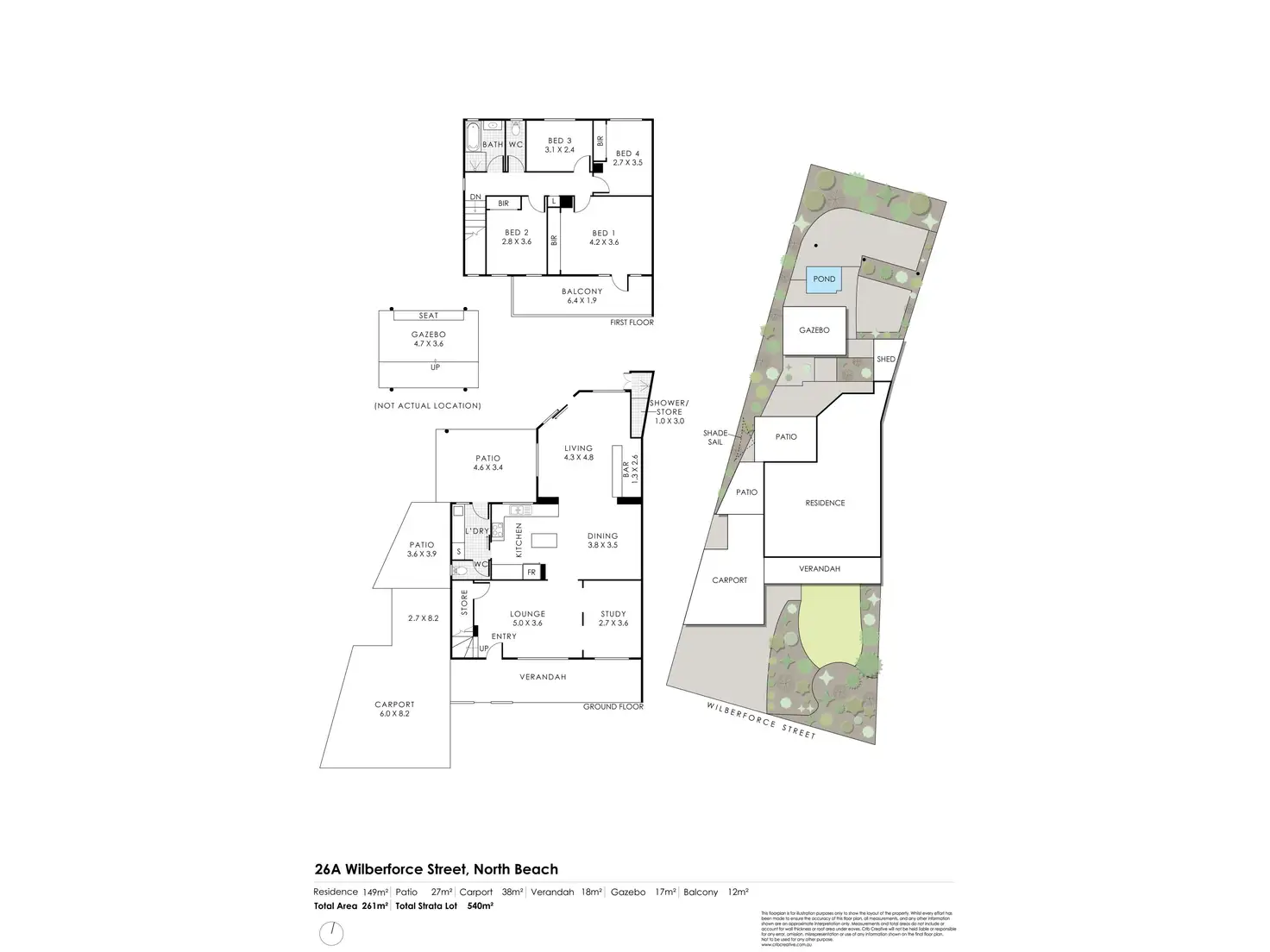- Huge carpeted upstairs master bedroom with a ceiling fan, two side-by-side built-in double wardrobes and access out to a covered north-facing front balcony, benefitting from pleasant ocean glimpses